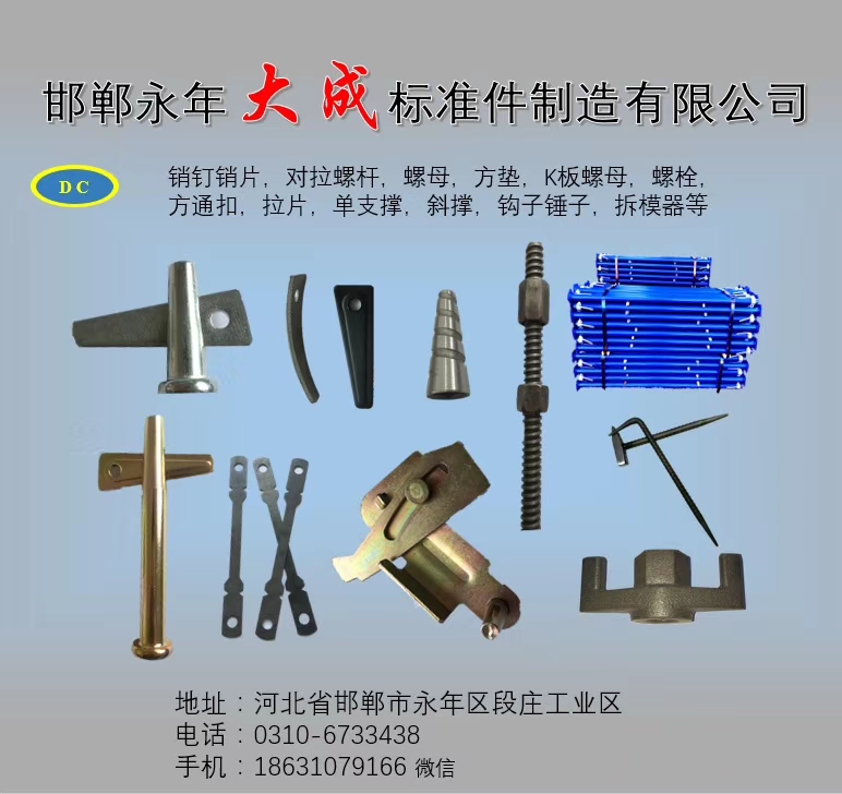 點(diǎn)擊數(shù):49062019-07-08 15:54:18 來(lái)源: 鋁模板銷釘_鋁模板配件_建筑扣件螺栓_扣件螺絲生產(chǎn)廠家-永年區(qū)大成標(biāo)準(zhǔn)件制造有限公司